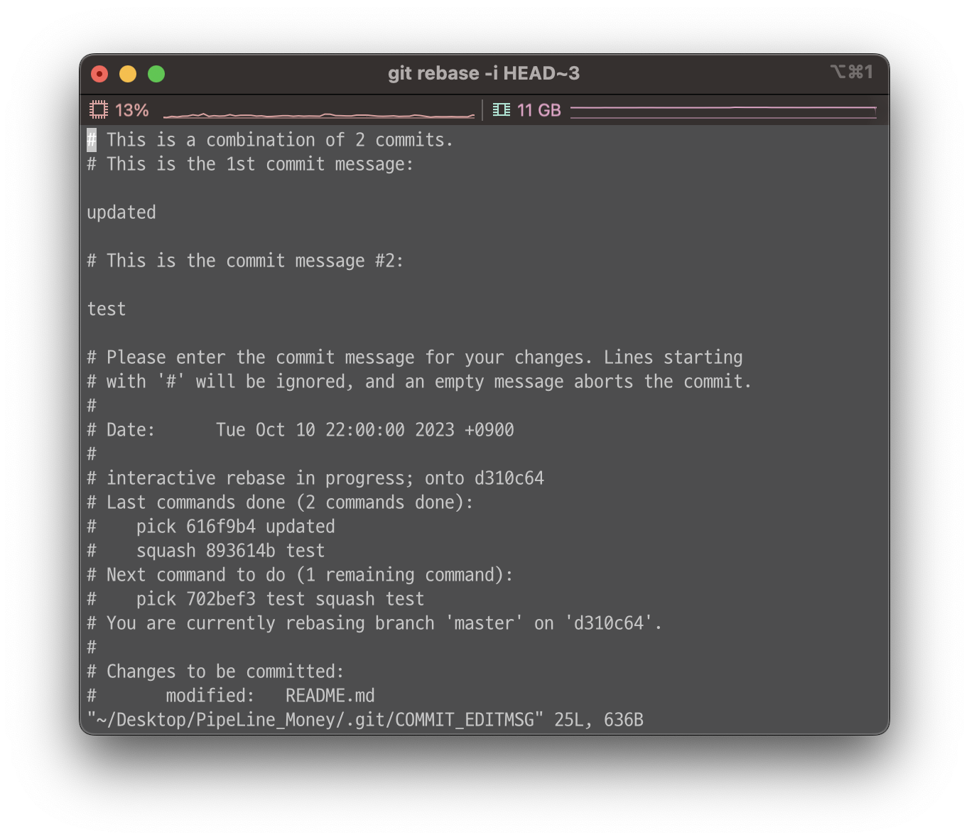 // 합친 커밋이 반영될 메시지를 작성